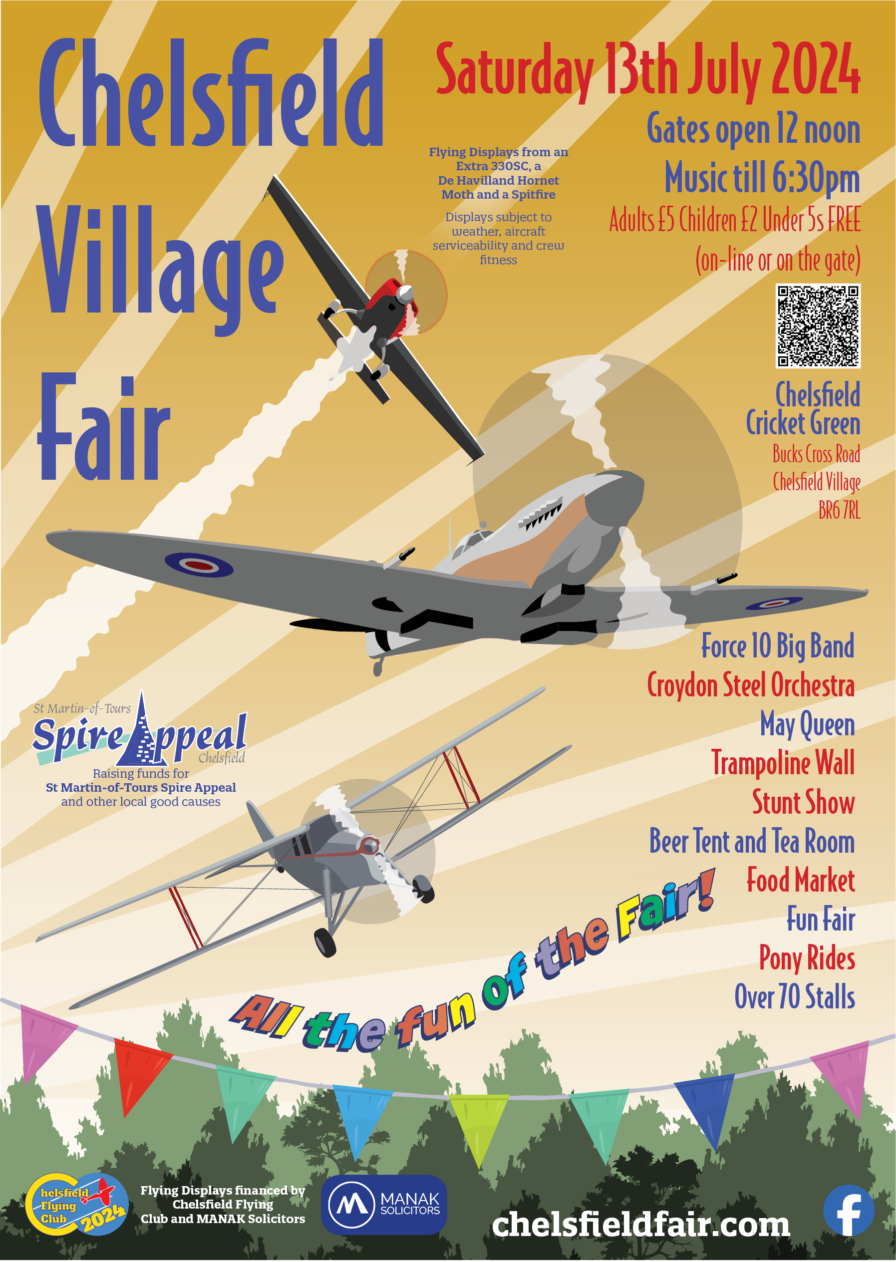 The Fair this year is on Saturday 12th July 2025 - gates open at 12 noon and it takes place on Chelsfield Cricket Green BR6 7RL. Adults £5.00, children £2 and under fives free. Includes free programme.